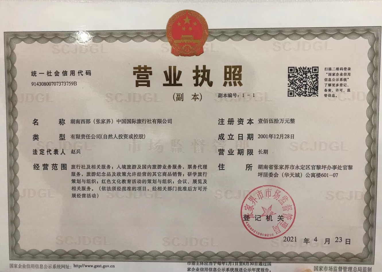 湖南西部(張家界)中國國際旅行社有限公司