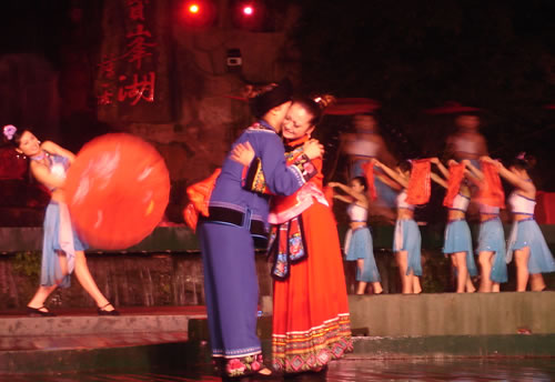 姑娘出嫁,為女人一生中最大的喜事,本應(yīng)充滿幸福、歡樂(lè)的氣氛。然而,舊時(shí)湘西、湘南、鄂西、川西(成都等地)、黔東(銅仁、凱里一帶)諸地,卻流行著一種與之完全相反情調(diào)的古老婚俗——“哭嫁”。也就是在姑娘“出閣”之前,不但新娘本人哭得很傷心,像淚人一般;而且,新娘的母親、姐妹以及姑媽、姨媽、舅媽及其他交往較多的女友,都要陪著新娘哭。湘西土家族哭嫁的風(fēng)俗尤為普遍、濃厚,不但哭嫁的時(shí)間較長(zhǎng)(少則十來(lái)天,多達(dá)個(gè)把月),而且哭嫁歌也保存得古樸、完整。 姑娘出嫁為什么要哭?哪有那么多的東西可哭?這是一種蘊(yùn)含甚為豐厚的人生禮俗,也是一種饒有興趣的婚俗事象。 俗話悅:“人不傷心不落淚!惫媚锍黾拗砸,是因?yàn)樵谂f式婚姻制度下,女孩(尤其是勞苦大眾家庭的女孩)總是作為犧牲品“拋”(賣)給夫家的,她們的身心受到極大傷害。因此,湘西等地的女孩在出嫁之前要哭泣,要呼號(hào),哭嫁歌就是感情發(fā)泄的最好表現(xiàn)方式。 哭嫁的源起 哭嫁的風(fēng)俗,不知道起源于什么時(shí)候。戰(zhàn)國(guó)時(shí)期,趙國(guó)的公主嫁到燕國(guó)去作王后,她的母親趙太后在臨別時(shí)"持其踵,為之泣,祝曰,必勿使返。"大約就是后來(lái)長(zhǎng)盛不衰的哭嫁風(fēng)俗的濫觴了。 這種風(fēng)俗,直至清末還盛行于四川農(nóng)村中,隨地區(qū)變化而大同小異。解放前,聽(tīng)老人們說(shuō),早些時(shí)候,沒(méi)有嫁而不哭的人家。如果出現(xiàn)嫁而不哭的姑娘,也會(huì)被鄰里看作沒(méi)有教養(yǎng)的人,傳為笑柄;相傳有出嫁姑娘不哭而遭母親責(zé)打的事,這位母親當(dāng)然算得上是入流導(dǎo)演了。 舊時(shí)宣講故事中,有花轎臨門,父親強(qiáng)令哭《迎風(fēng)罵媒歌》的情節(jié),可知哭嫁是有歌詞的,帶有表演性質(zhì),原是用來(lái)渲染氣氛,以悲襯喜;不過(guò),因?yàn)榛橐鍪前k的,真哭真罵的也不會(huì)少。 抗日戰(zhàn)爭(zhēng)后期,風(fēng)氣較開(kāi),哭嫁之風(fēng)已不盛行,而老人們卻還在津津樂(lè)道,哭的方式是,從婚期前一個(gè)月的首日起,入黃昏,姑娘訴哭約一個(gè)小時(shí),其聲嗚嗚。十天以后,她的母親加入"陪哭";又十天以后,她的祖母加入陪哭。這家沒(méi)有諸姑姊妹,人們說(shuō),如果有的話,也應(yīng)當(dāng)加入陪哭行列的。 哭嫁在川西叫"坐堂"。清代吉道人《味蔗軒隨筆·坐堂詞》云:"婚姻之禮,各省風(fēng)俗不同。然酌禮準(zhǔn)情,各省亦大同小異。凡男家娶婦先賦之詩(shī),謂之'催妝';女家親串頌女之詞,謂之'坐堂'。坐堂者,女當(dāng)喜期將近之先數(shù)夕,其諸姑伯姊,置酒為女祖餞,各述吉祥之詞,以為頌美,女則申己之意以答。女左右更有少女,則隨而嫻習(xí)者也。其詞要多鄙俚,然有音韻凄清,風(fēng)格遒勁,如古歌古謠者。羅江明府蔡,微服巡查鄉(xiāng)里,一日行至某處,值有女子歸,諸娣姒咸以諛詞頌女,女申意以答。忽風(fēng)吹句入耳,詞曰:'鳳凰落在桌子上,哪個(gè)女兒肯離娘'。一字一轉(zhuǎn),音韻凄其,誰(shuí)謂天籟之鳴,不在愚夫愚婦耶!"云云。吉道人姓周名際唐,成都人。吉道人記得明明白白,可惜他只記了一句哭嫁詞,難窺全貌。好在舊時(shí)坊間叢刻中有《訓(xùn)女哭嫁》一種,可見(jiàn)一斑。這本小書的目錄有《閨聲哭》、《娘訓(xùn)女》、《嫂哭妹》、《哭爹媽》、《哭哥嫂》、《花轎到屋哭》、《哭叔爺》、《哭兄弟》、《哭外公外婆》、《哭舅爺》、《拜香火哭》等等,編次有點(diǎn)凌亂,似乎隨手所記,未經(jīng)文人之手。遙想《詩(shī)》十五國(guó)風(fēng)未刪之時(shí),大約也不過(guò)如此吧! 閨聲哭 娘聽(tīng)后園鳥雀驚,要聽(tīng)房中女兒聲。 我娘當(dāng)門苦葛藤,手攀苦葛訴苦情。 我娘苦情苦過(guò)了,女兒苦情才起根。 ............ 桔子開(kāi)花葉子青,陽(yáng)雀開(kāi)聲我開(kāi)聲。 新打銅盆才裝水,新打剪刀兩面青。 娘不開(kāi)口我開(kāi)口,娘不開(kāi)聲我開(kāi)聲。 當(dāng)門一根木蓮樹,目連樹上掛卷經(jīng)。 一本經(jīng)書背完了,未見(jiàn)我娘來(lái)開(kāi)聲。 虧了我娘睡得穩(wěn),爹媽眼淚貴如金。 哭爹媽 月亮彎彎照華堂,女兒開(kāi)言叫爹娘。 父母養(yǎng)兒空指望,如似南柯夢(mèng)一場(chǎng)。 一尺五寸把兒養(yǎng),移干就濕苦非常。 ............ 勞心費(fèi)力成虛恍,枉自爹娘苦一場(chǎng)。 哭兄弟 黑漆茶盤烏木頭,姐姐離娘弟不留。 留到姐姐吃你飯,留到姐姐穿你衣。 兄弟當(dāng)家掙家忙,嫁了姐姐買地方。 上頭買齊潼川府,下頭買齊遂寧鄉(xiāng)。 ............ 這個(gè)本子所記是川北的歌詞,以前所見(jiàn)的是川南,吉道人所記的是川西,川東,大約也不會(huì)大異的。遺憾的是,該書所記哭嫁詞雖有"只怨媒人莫良心"等語(yǔ),卻沒(méi)有列出"罵媒專目,大約是怕媒人太難堪了吧! 其實(shí),罵媒是哭嫁中必不可少的節(jié)目,也是最具反抗色彩的哭嫁歌詞。舊社會(huì),婦女無(wú)婚姻自由可言,由于"三從四德"的束縛,平時(shí)對(duì)于自己的終身大事幾乎不能置一詞,全由媒人和父母擺布;因此,這登花轎之前的"罵媒",便是難得的發(fā)泄機(jī)會(huì)。這早已反映在戲曲和民間說(shuō)唱等藝術(shù)之中。 以前,川劇《柳蔭記》有《英臺(tái)罵媒》一折,英臺(tái)罵媒人,言