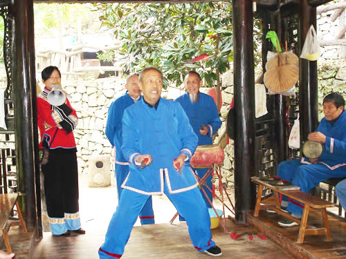 | 每年的正月初一到正月十五,藝人們結(jié)伴走村串寨拜年,表現(xiàn)對象不分貧富,戶戶必到。如遇貧寒之家,表演者將別家贈送的禮品相送,意在人人過節(jié)歡喜。充分體現(xiàn)出土家人熱情好客,心地善良的民族性格。對加強(qiáng)民族間團(tuán)結(jié)有一定的作用。