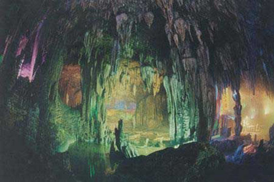 | 圣仙洞位于市郊尖子山白石巖腰。此洞穿通整個尖子山內腹,有洞口通向山頂。洞內的景觀有正宮殿、觀音殿、水晶殿、萬家灶、千層塔、大象廳、玉蘭園、瀑布巖、葫蘆臺、陽河口、神龜潭等大小廳堂14個,還有隱龍宮、舍身巖、南天門、北天門、銀河口、地獄洞、迷人洞等較小的洞,與主洞連通,景面壯觀。洞內有一水潭,水色甚優(yōu),投石無波,潭中有肥魚可供垂釣。