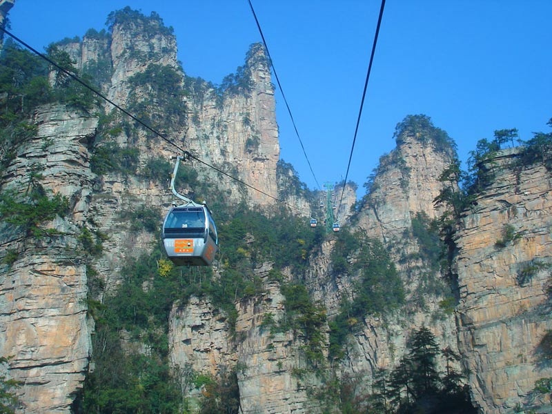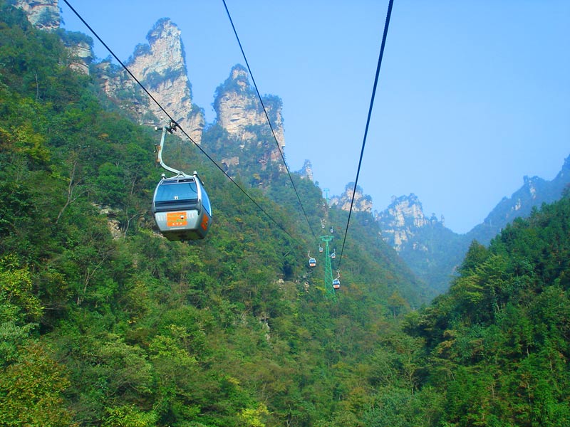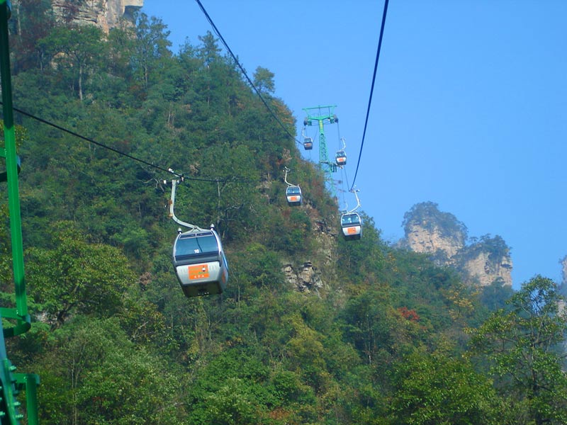 天子山索道 天子山索道的建成開通,極大地改善了武陵源風(fēng)景區(qū)的旅游交通環(huán)境,使游人花半日功夫上得天子山來(lái)只看一眼的遺憾,變成了間歇飛渡上山便可盡覽天子山這“擴(kuò)大的盆景,縮小的仙境”的迷人景色之享受。乘坐天子山索道,既舒適又安全,沿線風(fēng)光奇絕,奇松怪石,莽莽翠林,幽幽泉水,嬉戲獼猴,盡收眼底,令人嘆為觀止。尤其在云霧繚繞之時(shí),游客乘坐索道更能體驗(yàn)到神仙飄逸飛行的動(dòng)感與刺激。