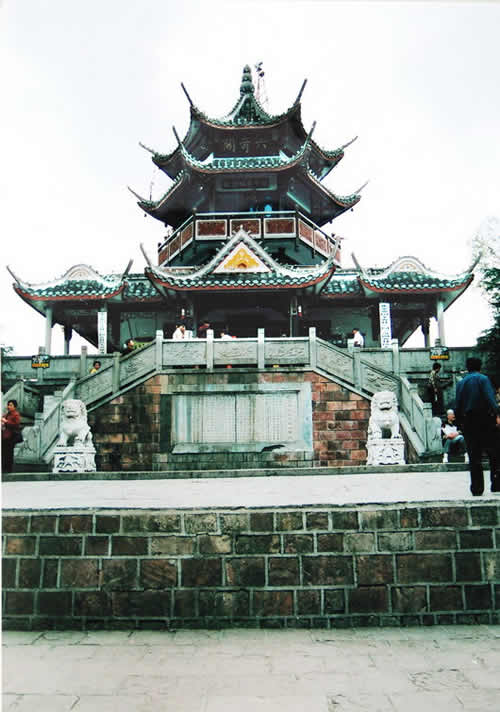 六奇閣是一幢塔狀的樓臺,座落在黃石寨的最高處。它是自然景觀群體唯一的一處人文景觀,突兀在石砌的方臺基上。湘潭大學(xué)教授羊春秋老先生于此撰聯(lián)曰:名動全球,到此真堪三擊節(jié);勢拔五岳,歸來不用再看山。