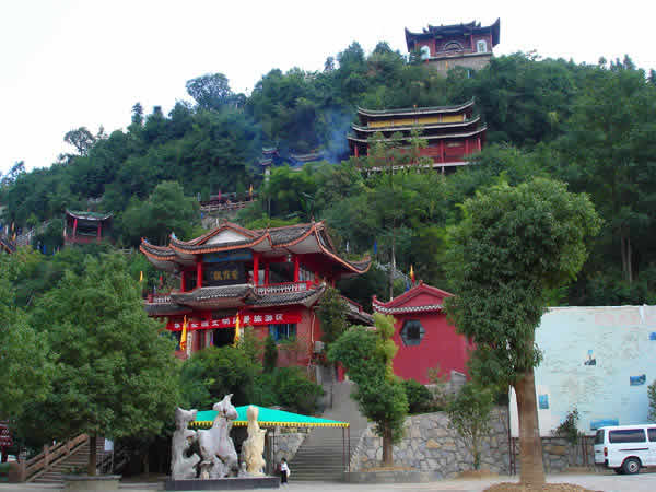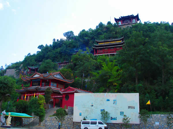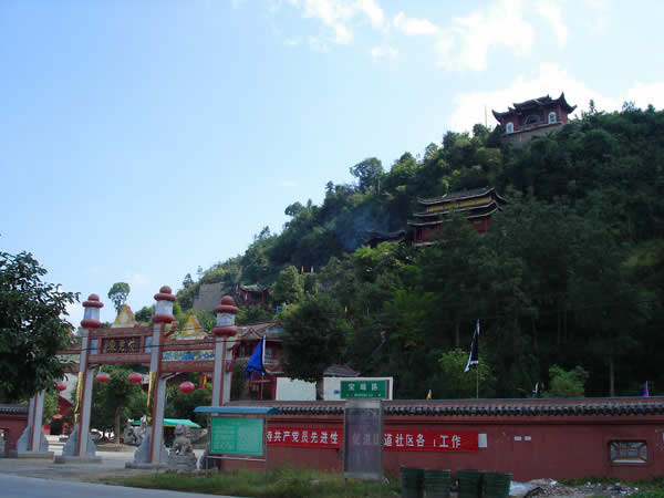 紫霞觀(guān) 紫霞觀(guān)始建于明朝嘉靖年間,近500年的歷史,在戰(zhàn)亂時(shí)期收到不同程度的破壞。紫霞觀(guān)是1992年因旅游事業(yè)的發(fā)展,教徒的信教,經(jīng)政府的批準(zhǔn),由各地的善男信女共同捐資,當(dāng)?shù)卣畵芸顢U(kuò)建起來(lái)的。道觀(guān)共有大小殿廟30余座,計(jì)5殿、3宮、2亭、2廟、1閣、八仙山、仙人足跡石、中華同心鎖等景點(diǎn)。中國(guó)著名書(shū)法家沈鵬先生為紫霞觀(guān)題寫(xiě)了觀(guān)名,觀(guān)內(nèi)有國(guó)內(nèi)外著名書(shū)法家的題詞、碑刻等宗教文物,以及老子教祖講經(jīng)說(shuō)法渡化圖一百余幅。