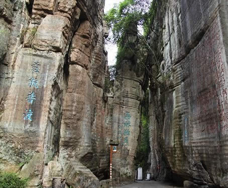 不二門 清嘉慶年間辟有洗心池。“不二門”如斧斫神劈,為石林天成,石林壁上鐫滿歷代文人的詩詠。這里古柏參天,藤蘿倒掛,環(huán)境幽美。有壁石如書的萬卷書者,有嵐霧束腰的七級青石培英塔。凝神盤坐的南海觀音是一塊天然造型的巨石,惟妙惟肖。觀音巖周圍,環(huán)繞著具有明清風格的地藏庵、嵩山堂、水府閣等建筑物,布局靈巧緊湊,主題鮮明,因勢造景。景點間曲徑迂回,迷趣深奧,稱八陣圖。景區(qū)內(nèi)的河灘上有兩處溫泉,氤氳縈繞,水溫適宜(41℃),水質(zhì)良好,能治療多種疾病?h城人民經(jīng)“不二門”前往溫泉就浴者絡(luò)繹不絕,現(xiàn)又增建了石牌坊和民俗博物館。