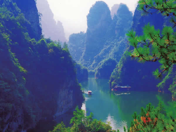 | 寶峰湖是世界自然遺產、世界地質公園、首批國家5A級旅游區(qū)張家界武陵源風景名勝區(qū)的組成部分。屬張家界地貌內自然山水與人文民俗相結合的湖泊型自然風景區(qū)。位于湖南省張家界市武陵源區(qū)東部,距張家界市區(qū)僅34公里。1984年,寶峰湖風景區(qū)對外開放。1992年,寶峰湖作為武陵源風景名勝區(qū)的組成部分被列入聯(lián)合國教科文組織《世界自然遺產名錄》。世界自然遺產------寶峰湖:被稱為“世界湖泊經典”,地處張家界武陵源風景名勝區(qū)的核心地帶,距天子山8公里,距武陵源區(qū)政府1.5公里,距黃龍洞8公里。寶峰湖風景區(qū)集山水于一體,融民俗風情于一身,尤以奇秀的高峽平湖絕景、“飛流直下三千尺”的寶峰飛瀑、神秘的深山古寺聞名。