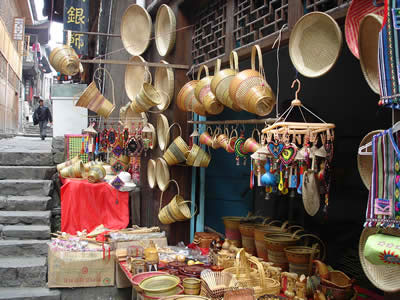 刺繡 刺繡。是土家姑娘在直紋平布上,按照布紋的經(jīng)緯和預(yù)先繪畫的花樣與底色不同的絲線繡成圖案。舊時(shí)姑娘們穿的繡花衣服,繡有服飾花邊、胸花、帽花,此外繡花枕頭、繡花荷包等也是精巧的手工工藝品。土家刺繡在配色上有自己的講究與習(xí)慣,一般選用青、藍(lán)、大紅等深色布料作底布,用淺色繡線制作圖案,或者相反,兩種用法的結(jié)果使繡品顯得質(zhì)樸逼真,色澤鮮艷,對比強(qiáng)烈。傳統(tǒng)圖案有“花開富貴”、“龍鳳呈祥”、“鴛鴦戲水”、“喜鵲鬧梅”、“松鶴同壽”等,分室內(nèi)、衣著、工具、行李裝飾等多種種類。在景區(qū),土家婦女邊繡邊賣的精美鞋墊,深受海內(nèi)外游客喜愛。