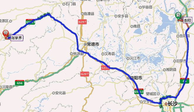 岳陽市到張家界自駕車路線圖
