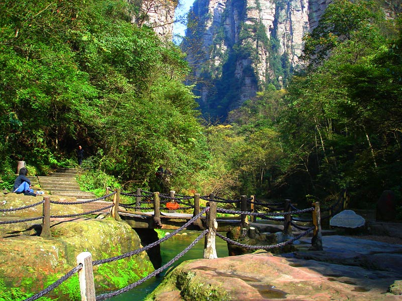 上 午:張家界市區(qū)出發(fā),乘車直接從武陵源門票站進(jìn)入【張家界國(guó)家森林公園】游玩(門票245元+5元景區(qū)保險(xiǎn),游覽兩天);徒步游覽“世界上最美麗的峽谷”---金鞭溪景區(qū)(約2.5小時(shí))(包含觀音送子、豬八戒背媳婦、神鷹護(hù)鞭、劈山救母、西游記外景拍攝地、千里相會(huì)等景點(diǎn)。)提示:走完金鞭溪后,沿龍鳳庵方向上楊家界。還可以從八里坡徒步約1.5小時(shí)上楊家界或者乘坐楊家界索道(需要乘坐者自行購買)上山,在指定時(shí)間地點(diǎn)集合。